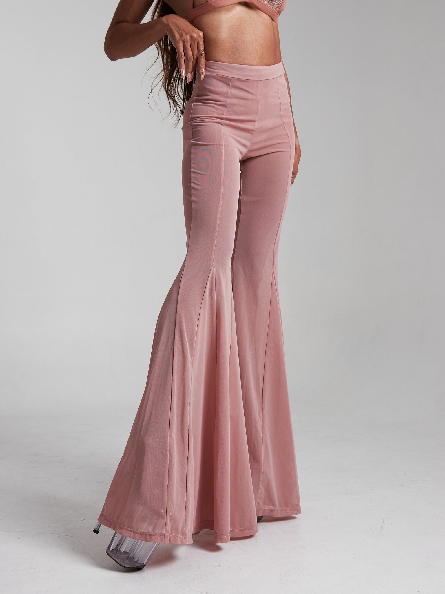 Møt din nye polewear-essential – ultra-myke flare bukser i høykvalitets, stretchy mesh som føles som en andre hud. Halvtransparent og pustende, de klamrer seg til kurvene dine og flyter med enhver bevegelse. Med smigrende high waist, full flare for dramatiske linjer, og snitt som delvis dekker danseskoen. Designet for selvtillit, komfort og effortless stil – på og utenfor stangen.